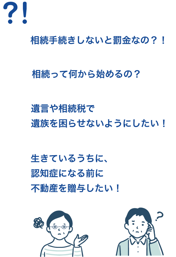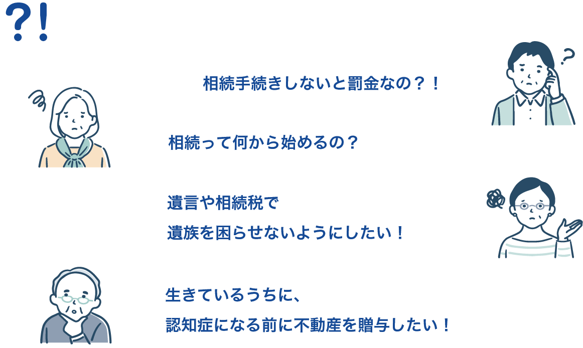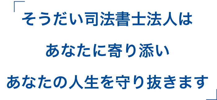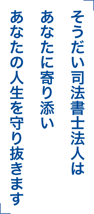 などのご要望・不安へ親身にお応えすることがそうだい司法書士法人の役目です。相続で罰金にならないように、そして相続でできる限り損しないように、お客さまのご要望をもとに直接サポートできるのが司法書士です。